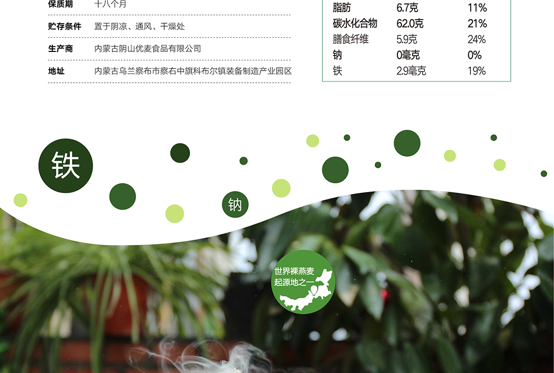 內(nèi)蒙古,世界裸燕麥起源地之一;陰山源生燕麥在初出生滿足生長(zhǎng)規(guī)律一切所需,高寒、高海拔、日照充足;遵循自然法則,靠天滋養(yǎng),自然生長(zhǎng);