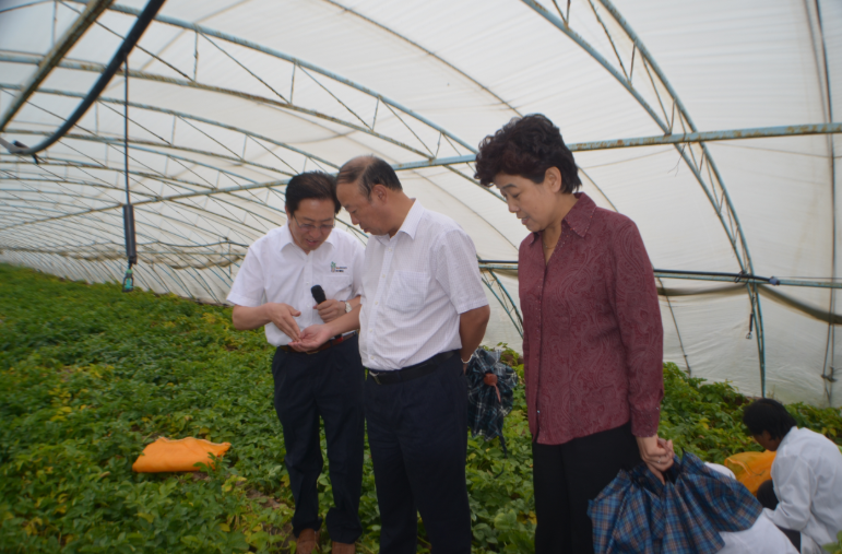 代表團在總經(jīng)理張國的陪同下參觀種薯種植基地